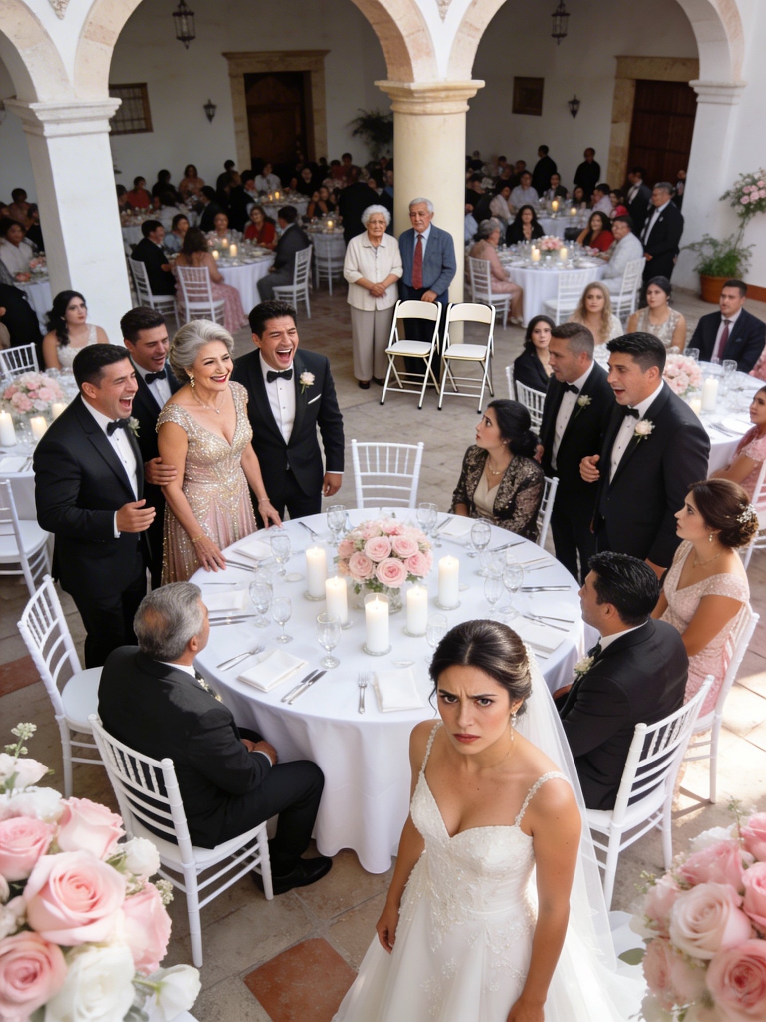 A solo quince minutos de la boda, descubrí que la mesa principal había sido cambiada: nueve asientos para la familia de mi esposo y mis padres de pie a un lado. Su madre se burló: “Qué patéticos se ven”. Entonces tomé el micrófono… y lo destruí en un instante.