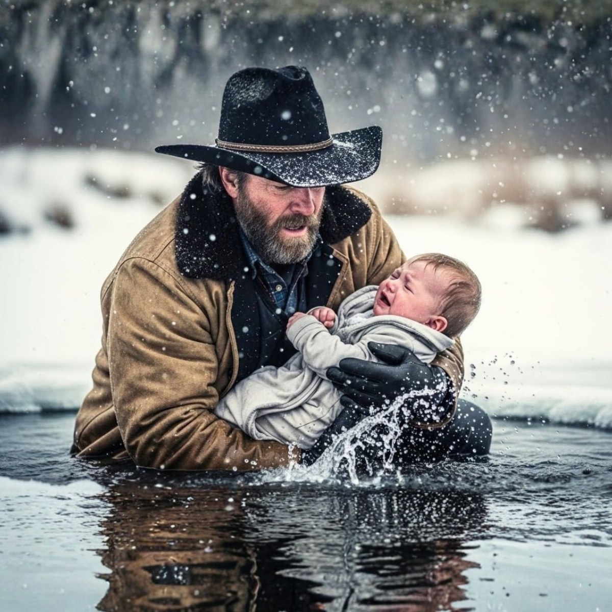Arrojaron a un bebé al arroyo helado. Un vaquero se dio la vuelta y echó a correr cuando oyó el grito: “¡Mamá!”.