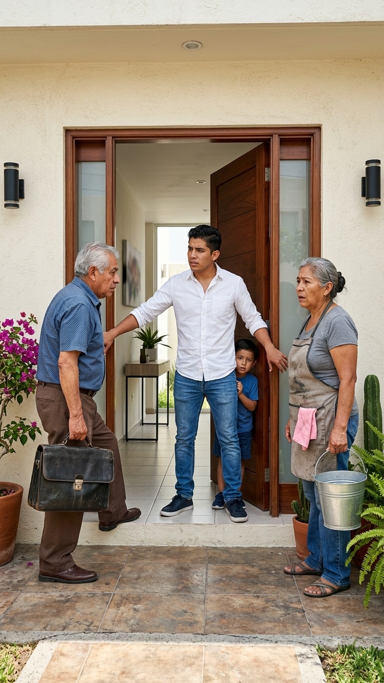 —Las visitas no son bienvenidas sin previo aviso, papá. Tenemos compromisos y mamá está muy ocupada limpiando —dijo Mauricio, con 1 cinismo que cortaba la respiración. Valeria apareció detrás, riendo de forma burlona, exigiendo privacidad.