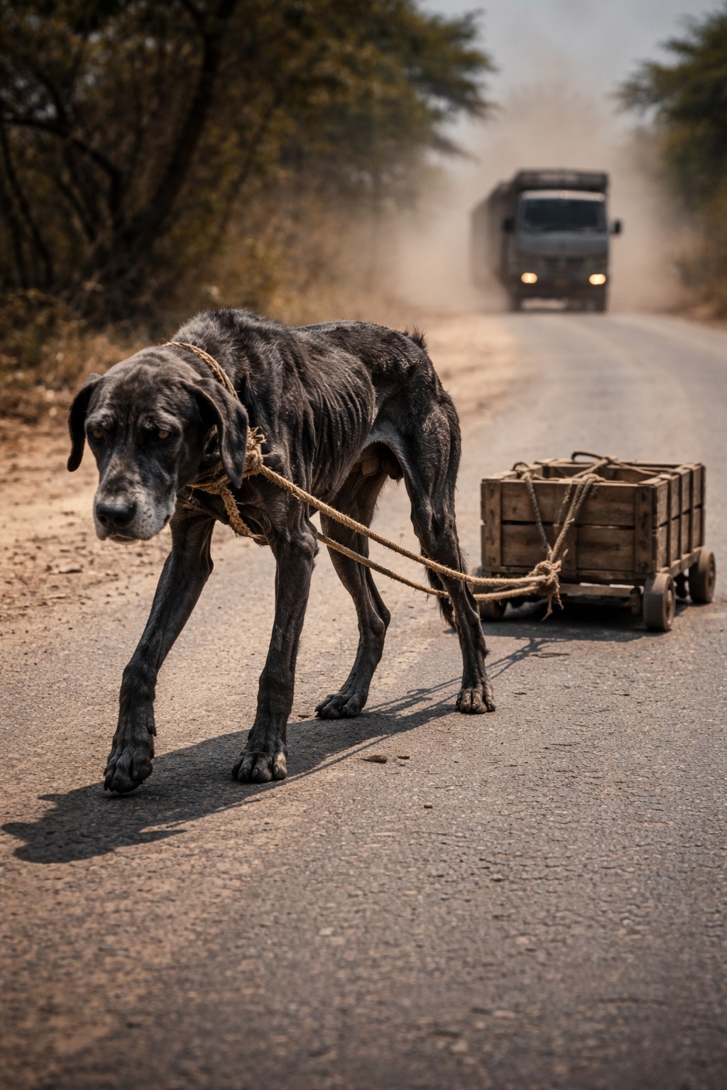 PARTE 2: Canela dio un paso atrás desconfiada. Sus ojos cansados miraban a Miguel con miedo. El camionero notó las heridas en sus patas, el polvo en su pelaje, lo flaca que estaba. "Debes tener mucha sed", dijo Miguel. "Espera un momento." Regresó rápido a su camión y sacó una botella de agua y un recipiente de plástico que usaba para su café. vertió agua en él y lo puso en el suelo a medio camino entre él y la perra. Canela miró el agua.