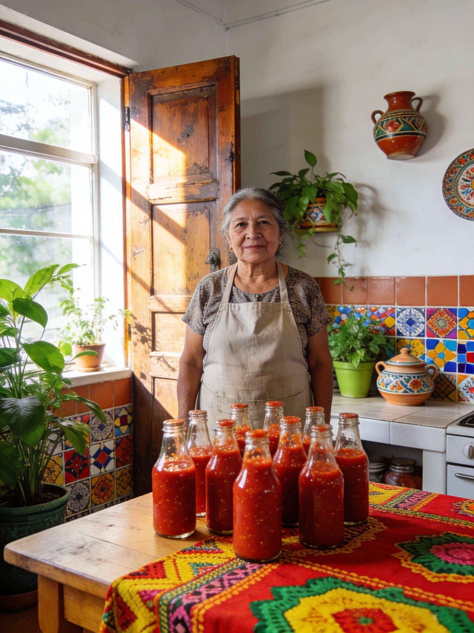 Su abuela preparaba una salsa espesa, roja, brillante, con un picor lento y un fondo dulce imposible de adivinar. Los vecinos empezaron a pedirla. Luego las fondas. Después los mercados. Al final, Estela comenzó a embotellarla. Lo hacía sin prisa, como si supiera que las cosas verdaderas no necesitaban gritar.