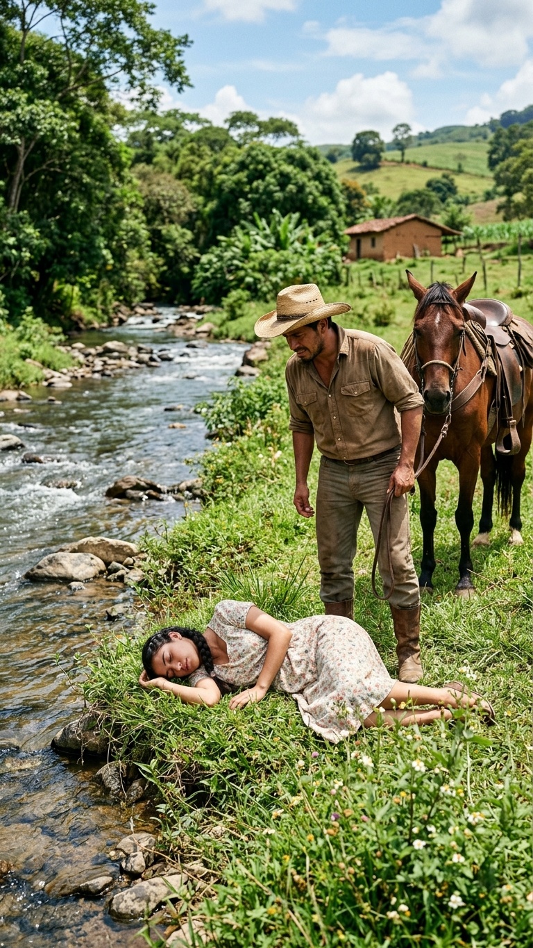 El sol de Jalisco caía como plomo sobre los campos de agave khi Mateo cabalgaba de regreso a su rancho. El aire olía a tierra seca y a ese silencio pesado que solo se interrumpe por el crujir de las ramas. Al acercarse al recodo del río turbio, su caballo, un alazán de 12 años, relinchó con nerviosismo. Mateo tensó las riendas. Entre las rocas lamidas por la corriente y el lodo acumulado, divisó un bulto blanco que no pertenecía al paisaje.