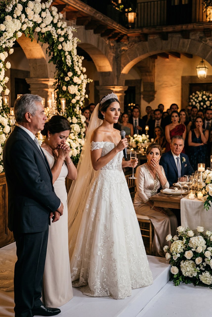 La mesa principal, la nuestra, la que debía reunir a la gente que había hecho posible ese día, estaba ocupada por otras caras. Nueve, para ser exacta. Nueve personas que no eran mi familia. Nueve intrusos acomodados entre los centros de mesa de bugambilias blancas, las velas perfumadas y la vajilla de porcelana. Reconocí a varios con esa sensación amarga de familiaridad que dejan las reuniones de compromiso donde una sonríe por educación: la tía Mónica, especialista en chismes disfrazados de preocupación; un primo de Monterrey que sólo hablaba de inversiones; el compadre de don Ricardo de la Torre, que se reía como si el mundo le debiera una fiesta; una madrina lejana; un empresario barrigón que olía a loción cara y cigarro añejo. Nueve sillas, nueve reemplazos.