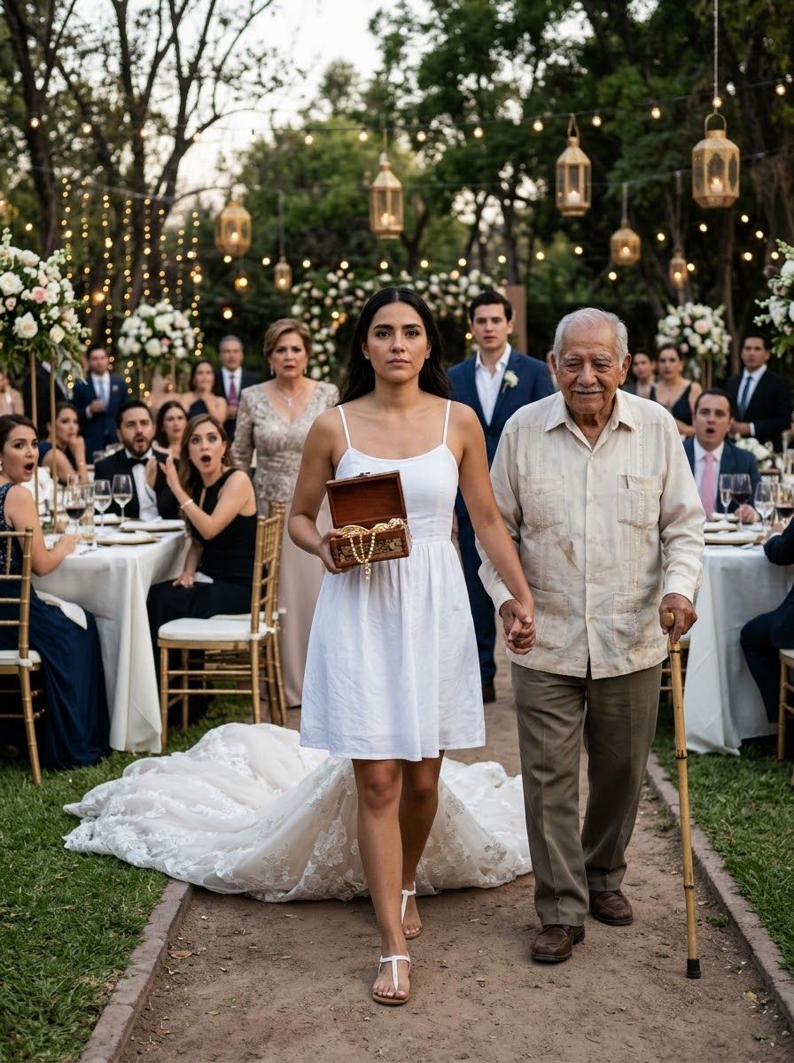 Allá, al fondo del jardín, casi fuera de la vista de todos, sentado en una silla sencilla que parecía fuera de lugar entre tanto lujo, estaba mi padre.
