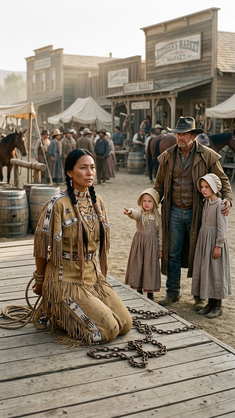 Un día, la monotonía gris del pueblo se vio interrumpida por un alboroto inusual en la calle principal. Habían capturado a una mujer. Pero no era una mujer cualquiera; era una apache. La arrastraban encadenada, con el vestido rasgado y marcas de heridas recientes en la piel, pero caminaba con una majestuosidad que dejaba a todos boquiabiertos. Llevaba la cabeza en alto, sin derramar una sola lágrima, sin emitir una sola súplica. Sus ojos, negros y profundos como la noche del desierto, escrutaban a la multitud enfurecida con una dignidad inquebrantable. Miraba a sus captores no como si ella fuera la prisionera, sino como si ellos fueran los verdaderos cautivos de su propio odio.