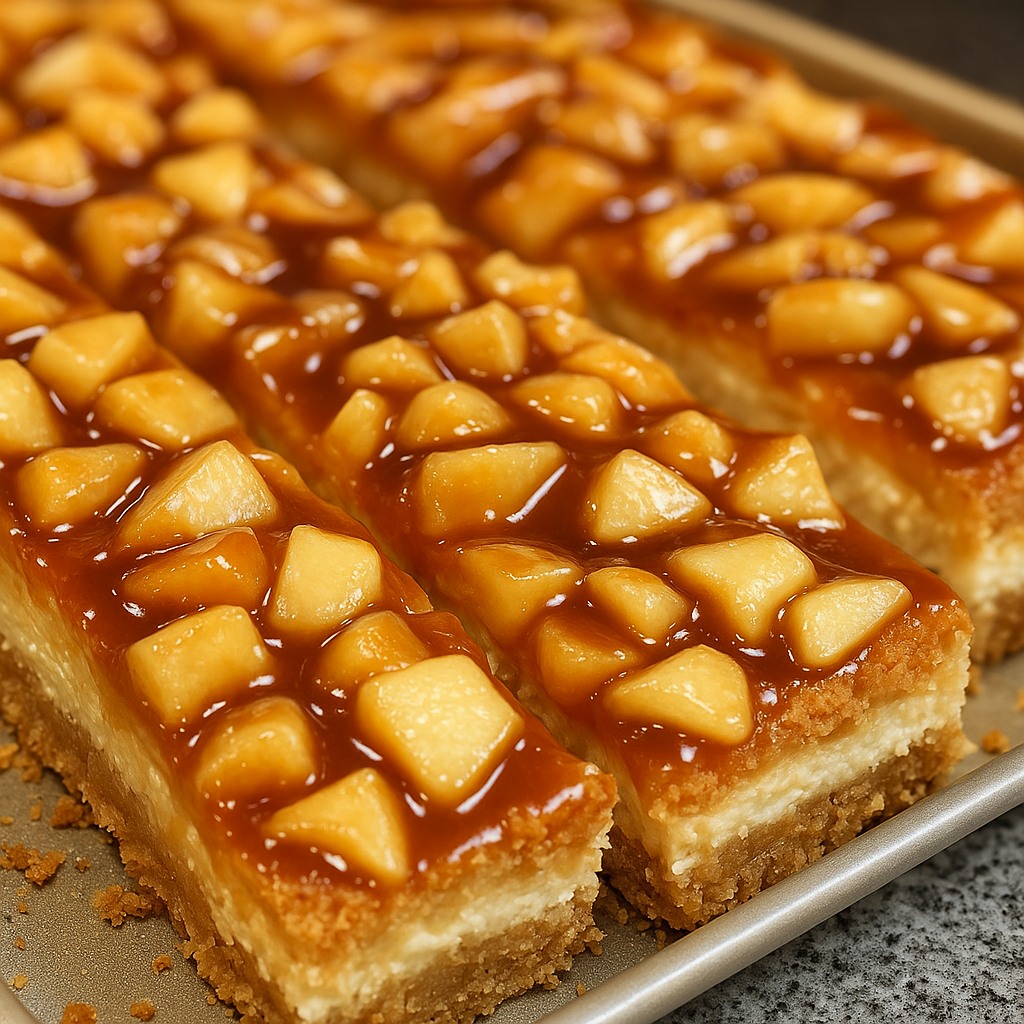 Hay postres que no solo deleitan el paladar, sino que también conquistan los sentidos desde la primera mirada. Esta delicia en capas de manzana y caramelo es uno de ellos. Imagina una base crujiente de galleta graham, un centro suave y cremoso de cheesecake, una capa jugosa de manzanas especiadas y, como broche de oro, un toque de salsa de caramelo que se derrite lentamente en cada porción.