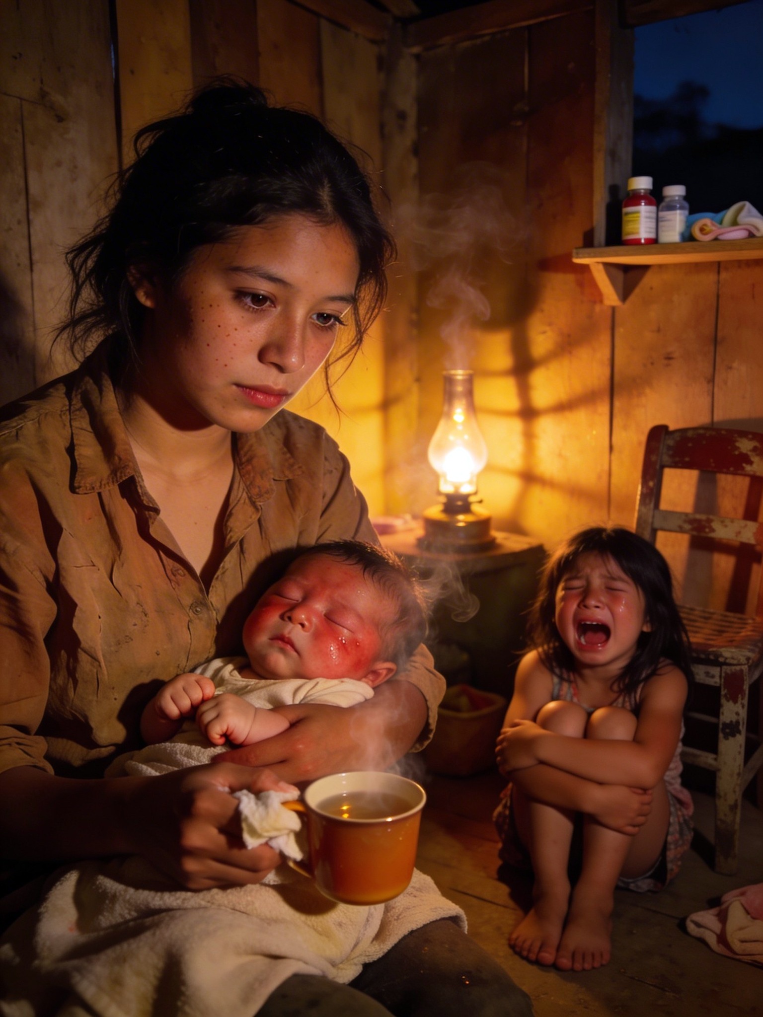 Y ahora estaba ahí, frente a un hombre agotado, una niña endurecida por el dolor y un bebé que lloraba como si se estuviera apagando.
