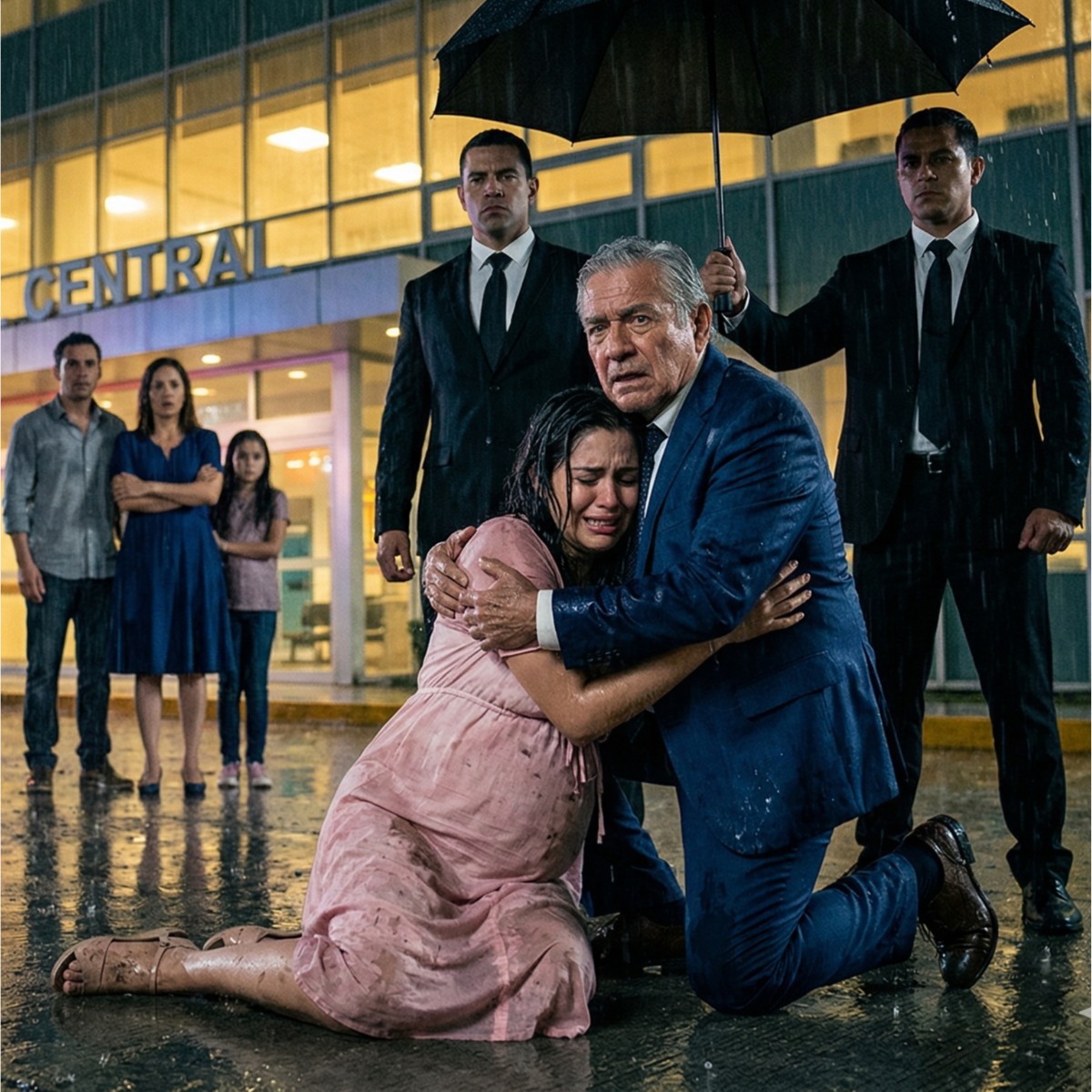 La lluvia golpeaba la entrada del hospital como si quisiera arrancar las puertas. Era una noche de octubre en la Ciudad de México, de esas en las que el cielo se vuelve negro antes de tiempo y el viento arrastra basura, hojas y malas decisiones por las banquetas. En medio de esa tormenta, bajo la luz blanca de los faros y el rojo intermitente de una ambulancia que apenas acababa de doblar la esquina, Julián Barrera empujó a su esposa embarazada fuera de la acera.