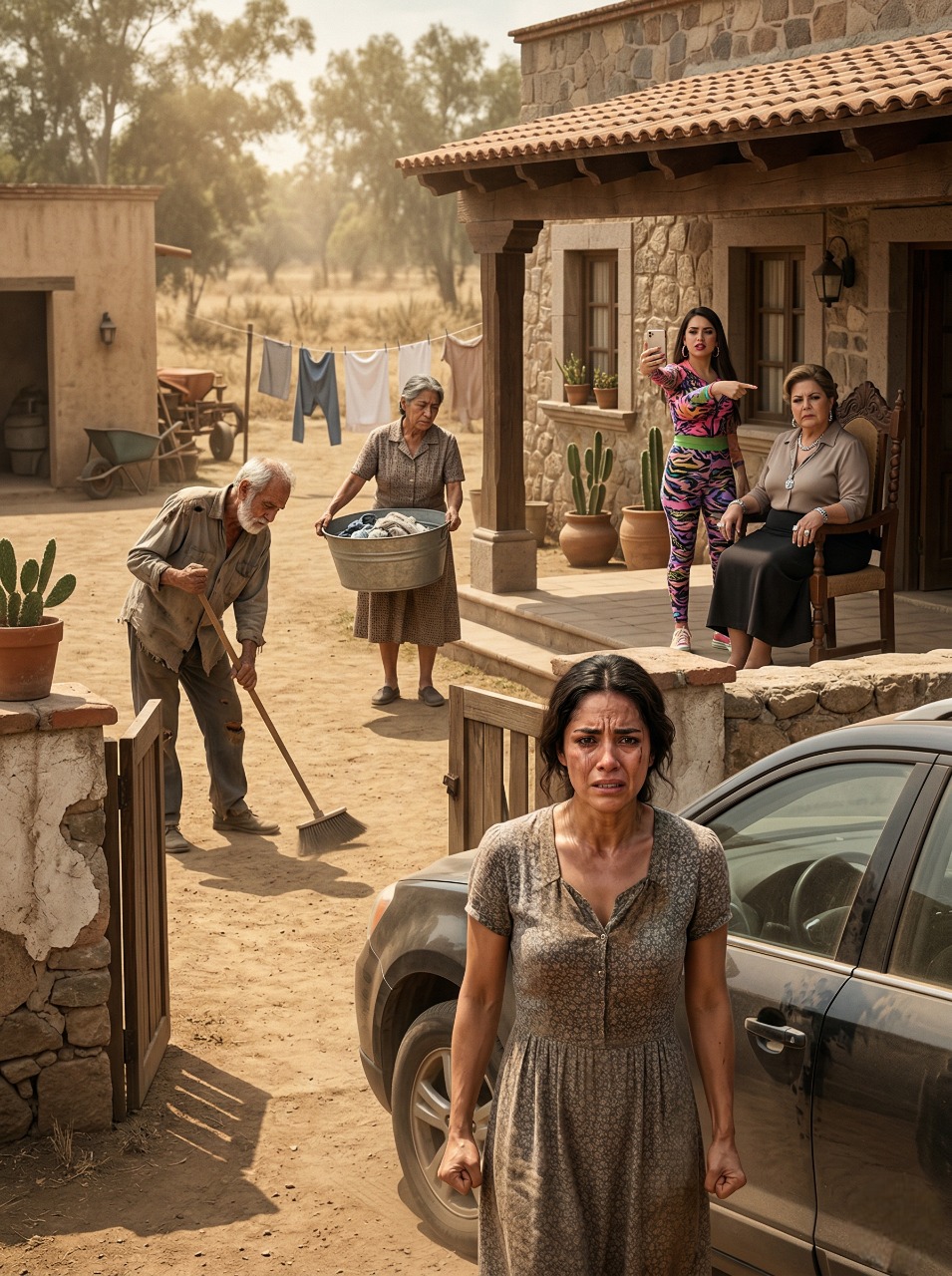 Lo primero que vi al regresar al pueblo no fue la casa blanca con tejas rojas que compré para que mis padres envejecieran con dignidad. No fue el corredor ancho donde mi madre soñaba sentarse a rezar al atardecer. No fue el campo dorado detrás de la cerca, ese pedazo de tierra fértil que adquirí con años de desvelos y humillaciones en la ciudad para que mi padre nunca volviera a doblar la espalda por necesidad.